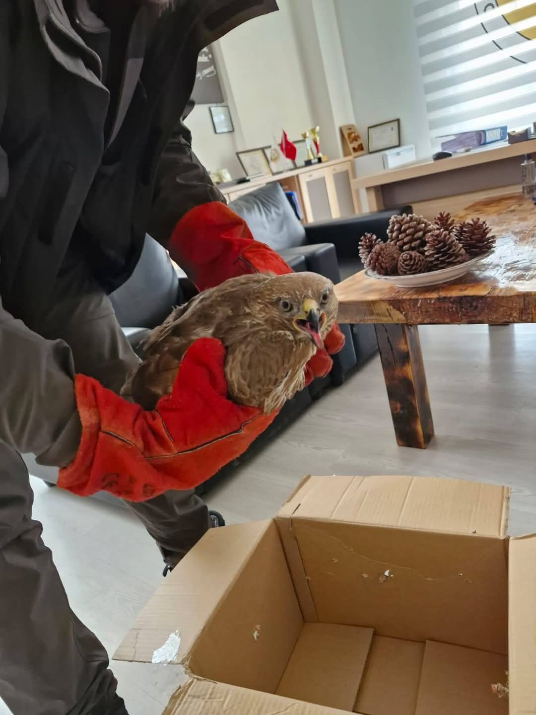 Denizli’nin Bozkurt ilçesinde vatandaşlar tarafından yaralı halde bulunan doğan, Honaz Milli Parklar ekibine teslim edildi. Sağlık kontrollerinden sonra doğan tekrardan doğaya bırakılacağı öğrenildi.