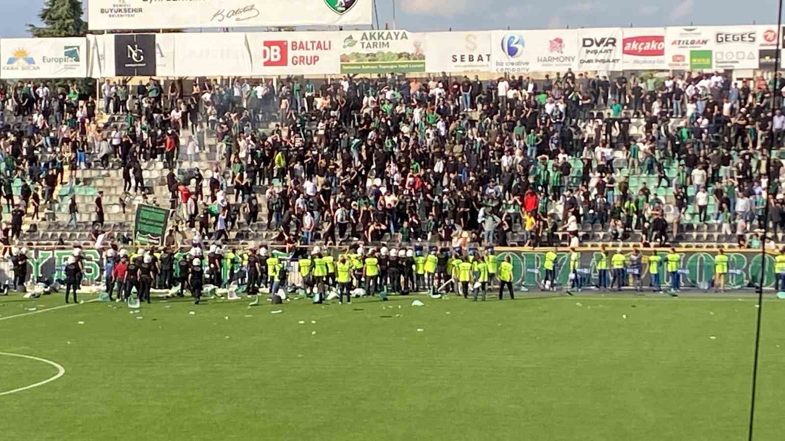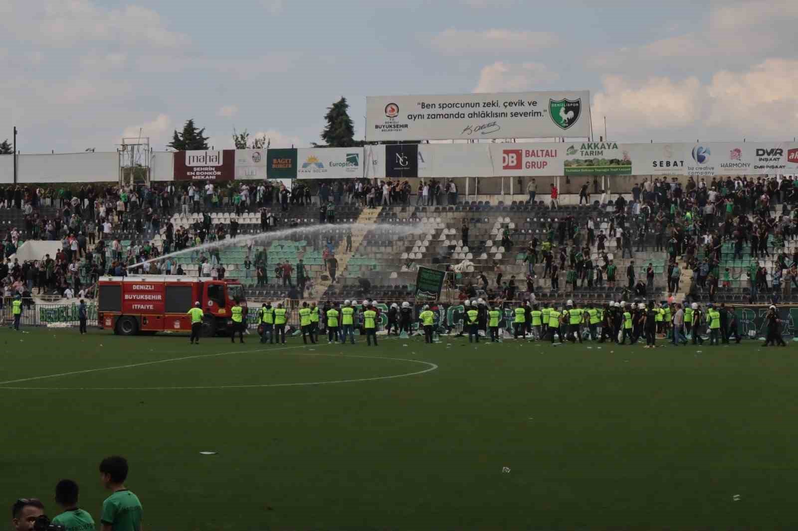 Denizlispor’un küme düşmesinin ardından taraftarlar statta olay çıkardı. Maçın bitiş düdüğü ile bir grup taraftar kırdıkları koltukları sahaya fırlattı ve tribün koltuklarını yaktılar. Yakılan koltuklar itfaiye ekiplerinin müdahalesiyle söndürüldü. İtfaiye ekiplerinin yakılan koltuklara müdahale etmesine sinirlenen taraftar kırdıkları koltuklarla itfaiye ekiplerine saldırdılar.